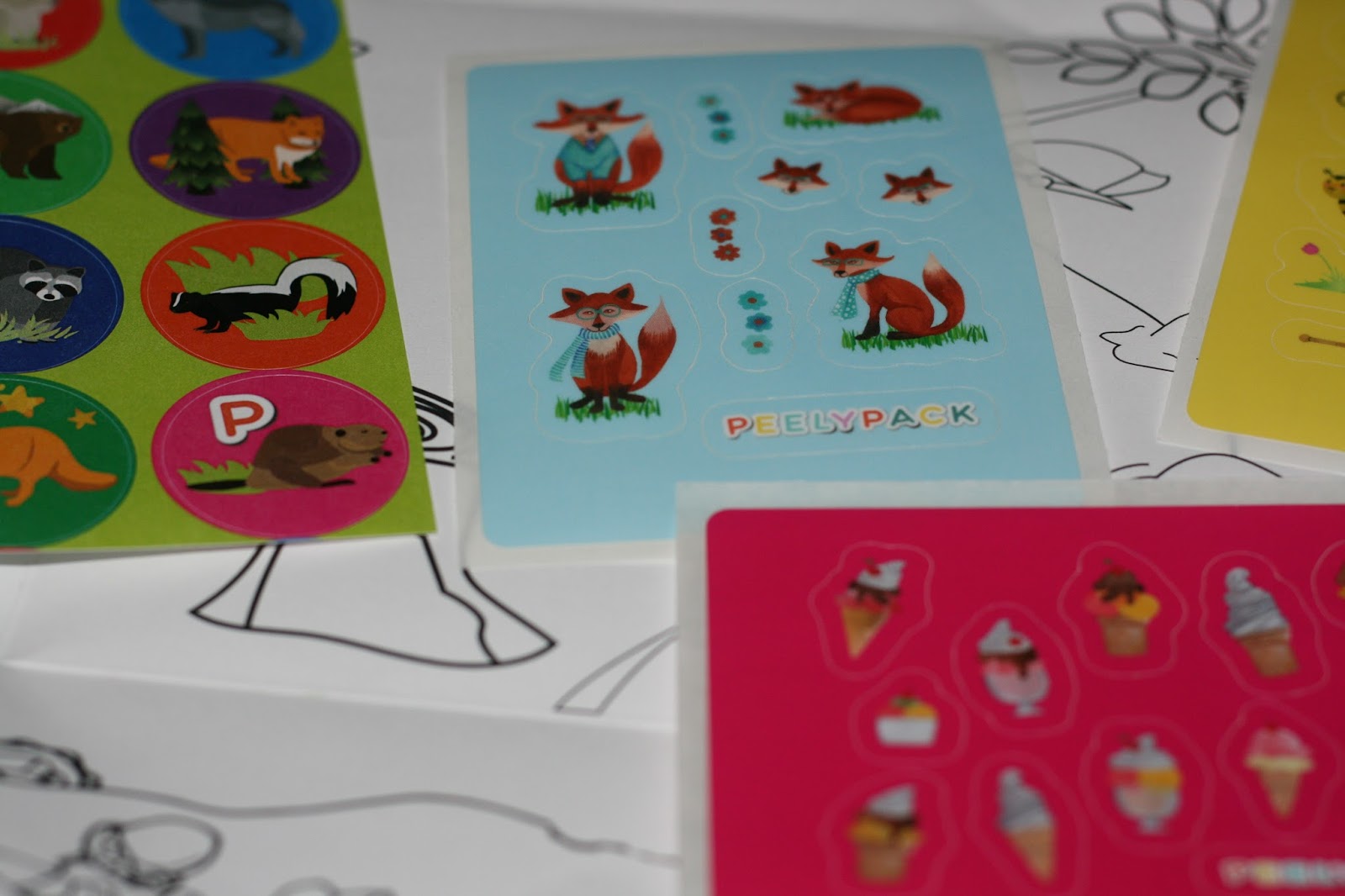 This month's theme was animals and woodlands with a great and consistent pallet. I hope my pictures show that the pack contains not only the stickers, but a fun activity mat style background to help your child's imagination run wild.